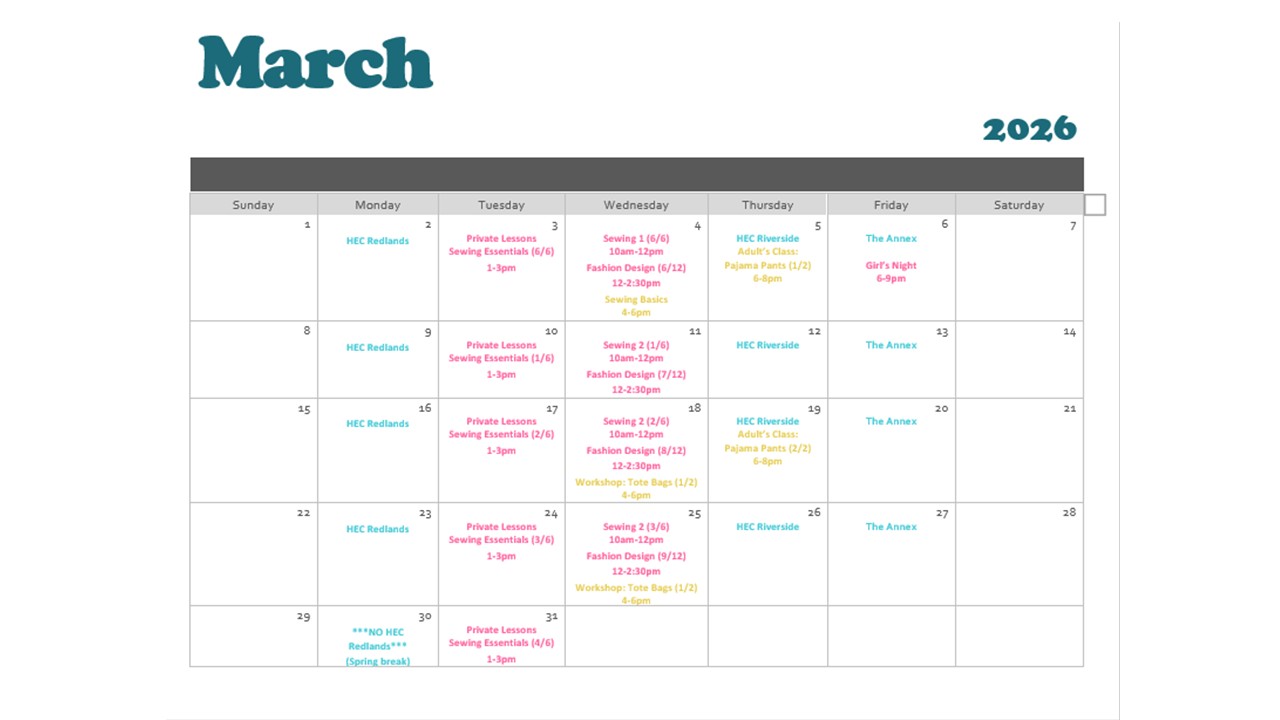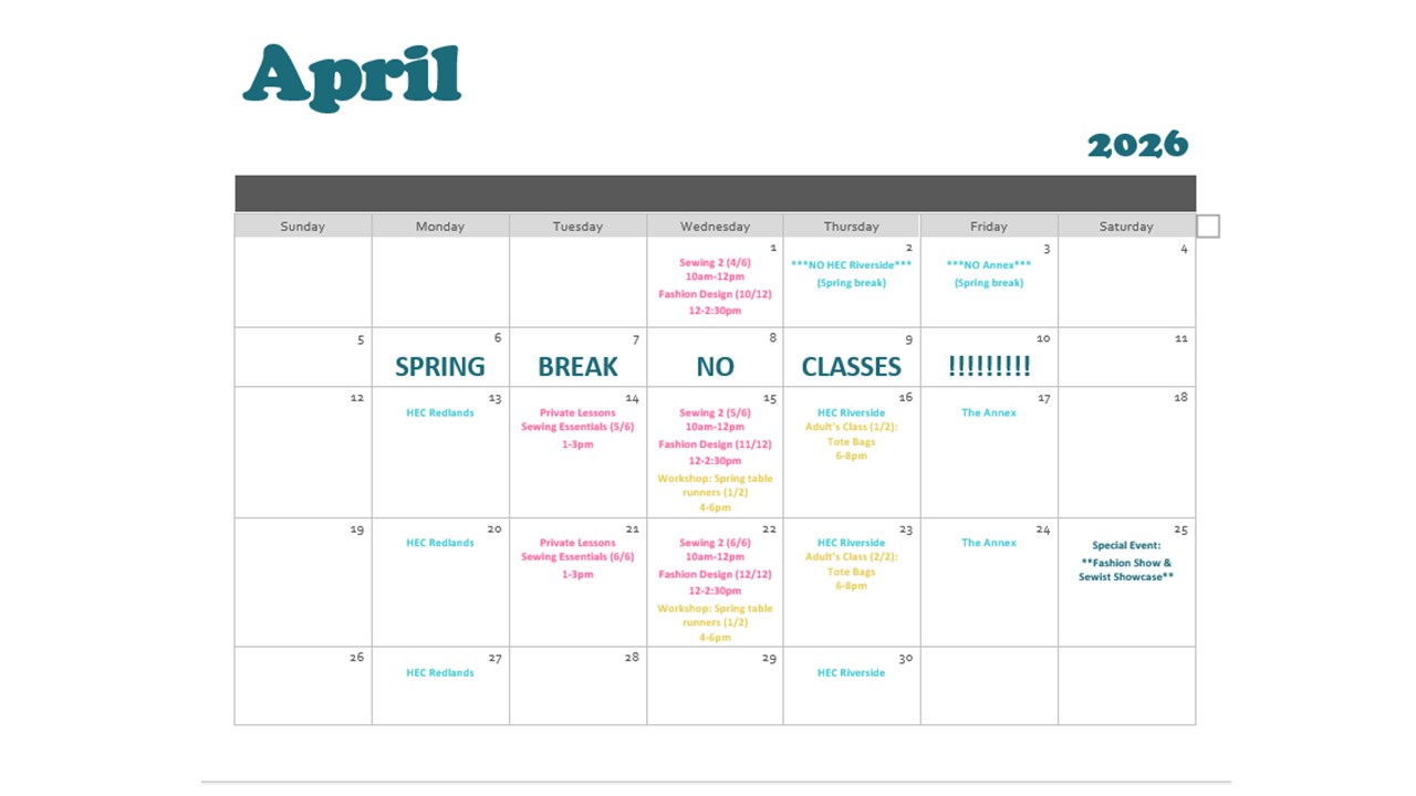 I have all of my classes “at a glance” on calendars below. Each class is listed individually. To sign up, begin by clicking on the class you are interested in. There, you will find all the details you need! Please carefully, and fully, read the class description as it will tell you what you need to know about the class, including skill level, prerequisites, and if materials are included or need to be purchased separately. To see the available dates/times, you need to click on the “select options” tab. To enroll in a class, please add the class to your cart. Upon checkout, you will have an option to pay in person or pay online. Please don’t pay online; I prefer you to pay via cash, venmo or purchase order (for homeschool kids) to avoid fees 🙂 Select the “cash” option at check out, and checking out will get you registered for the class. If you do not complete this process, you are not signed up for the class! I have a limited number of spots available, so it’s important that you sign up through this process!