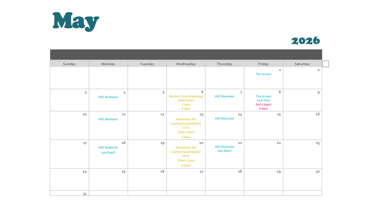 *This is a preview of classes I have planned for the upcoming months. Classes may be added (or deleted) at any time. Please scroll above to see which classes are open for registration at this time.