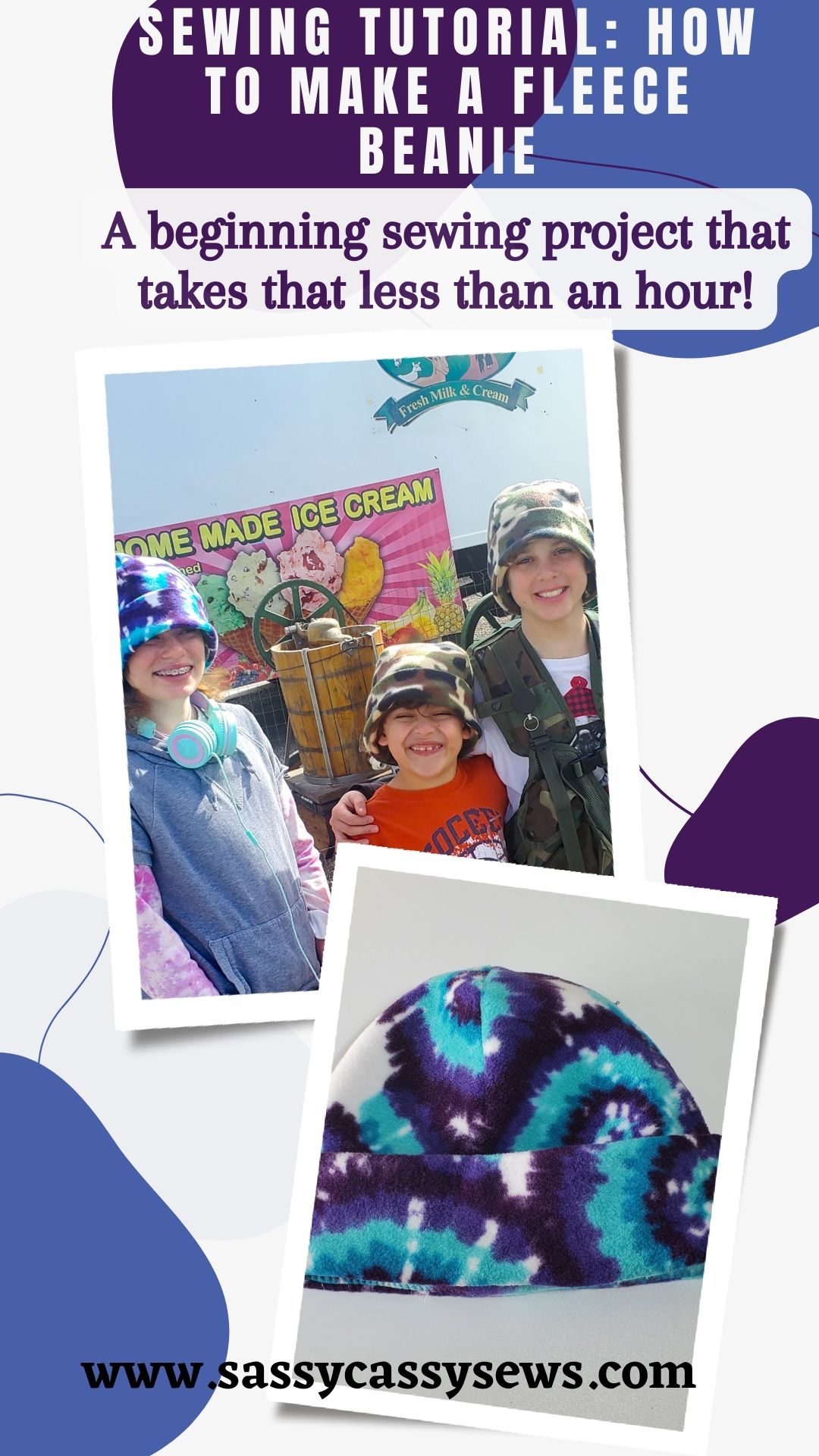 I’m always looking for fun, easy, beginning sewing projects for my students; things that they can make and take home in one class. As I was perusing pinterest for ideas on what to make with my sewing 2 class this semester, I came across a very simple pattern for sewing fleece beanies. What a perfect project to start the new semester with, in the middle of January! Granted, we live in Southern California where we don’t see much of a harsh winter. But we do have our cold days! The evenings are especially chilly. Don’t laugh. It’s true.